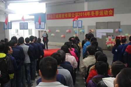 2014年12月27日,中山三诚精密有限公司举办了2014年冬季运动会及趣味游园活动。由于天公不作美,当天下着零星小雨,于是组委会决定将运动会由室外转移到了室内。三诚人欢聚一堂,隆重举办中山三诚精密首届冬季运动会,意义十分重大!董事长雷建球女士代表远创集团向员工们致以诚挚的问候,向参加本次比赛的所有选手和评委表示了热烈的欢迎!并表示“你们的参与,必将为我们的这次活动增色添彩,赋予更特殊的意义,必将给我们公司的精神文明建设起到新的促进作用。”